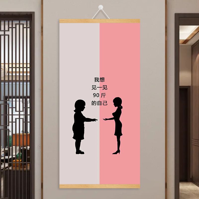 健身房减肥激励实木挂壁画瘦身自律打卡墙饰ins风客厅玄关装饰画