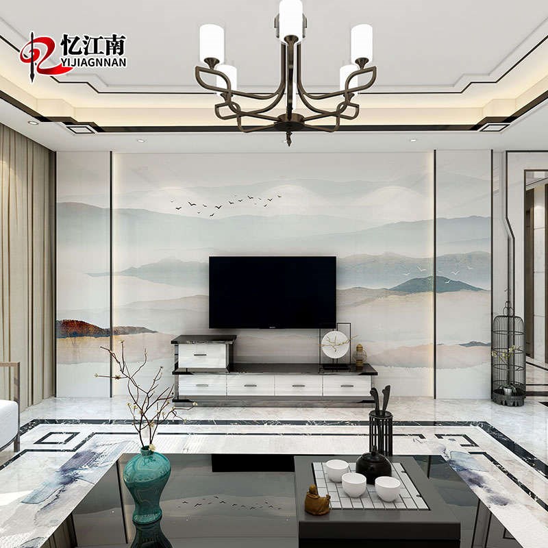 您的位置: 新中式电视背景墙瓷砖3D客厅微晶F石山水画现代简约岩板 山水情