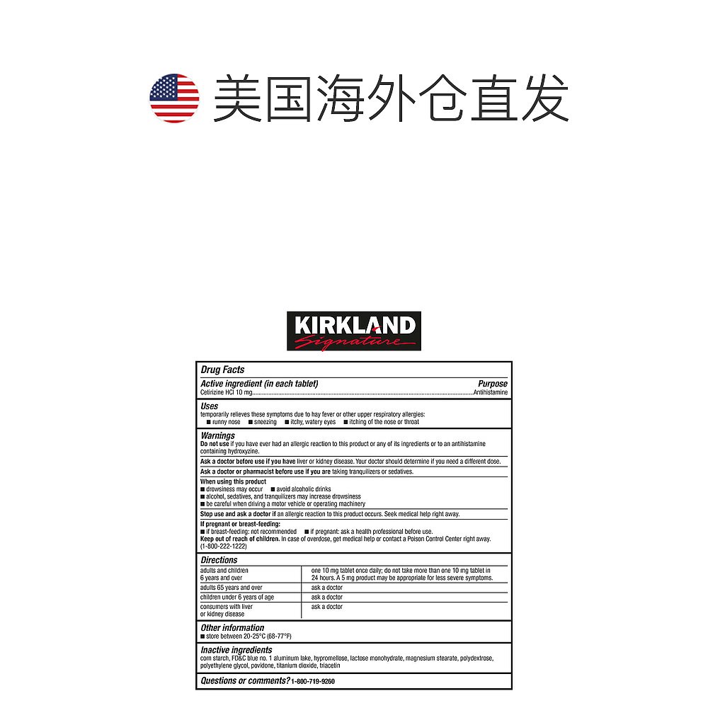 美国直邮Kirkland Aller-Tec抗过敏片10mg 盐酸过敏药进口365粒