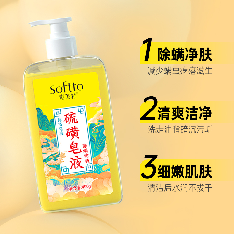 索芙特硫磺皂液除螨沐浴露祛后背痘痘红点疙瘩止痒洗脸通用香皂
