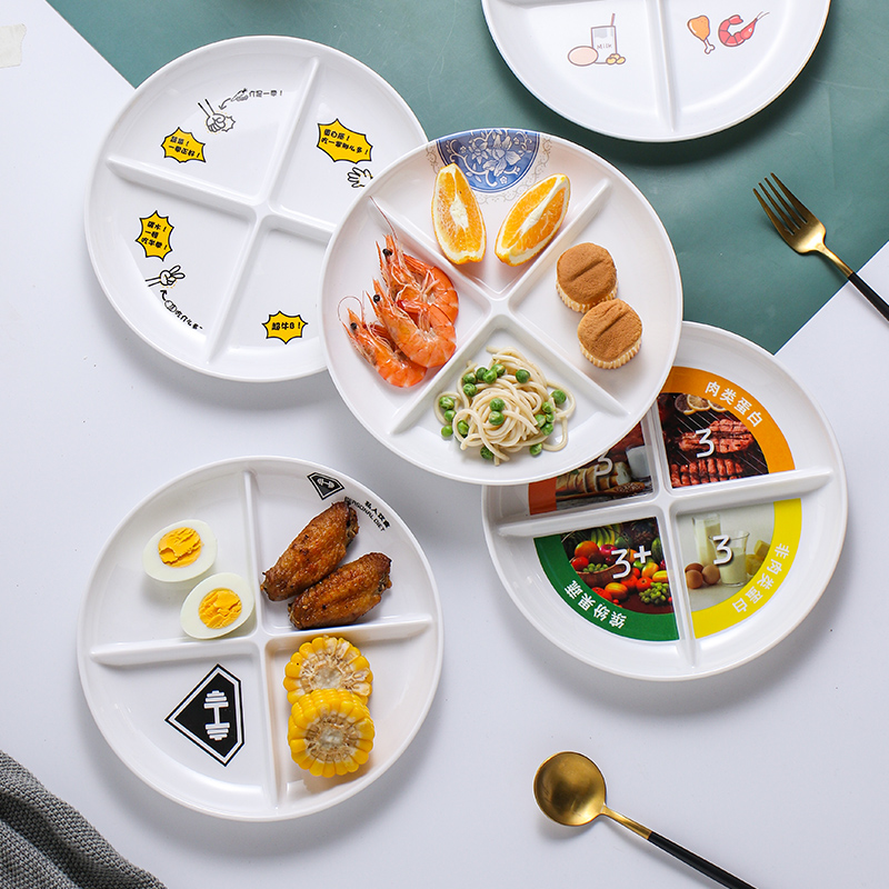 您的位置: 加厚密胺减肥餐碟子减脂健康盘营养分餐盘健身四格食堂快餐饭盘