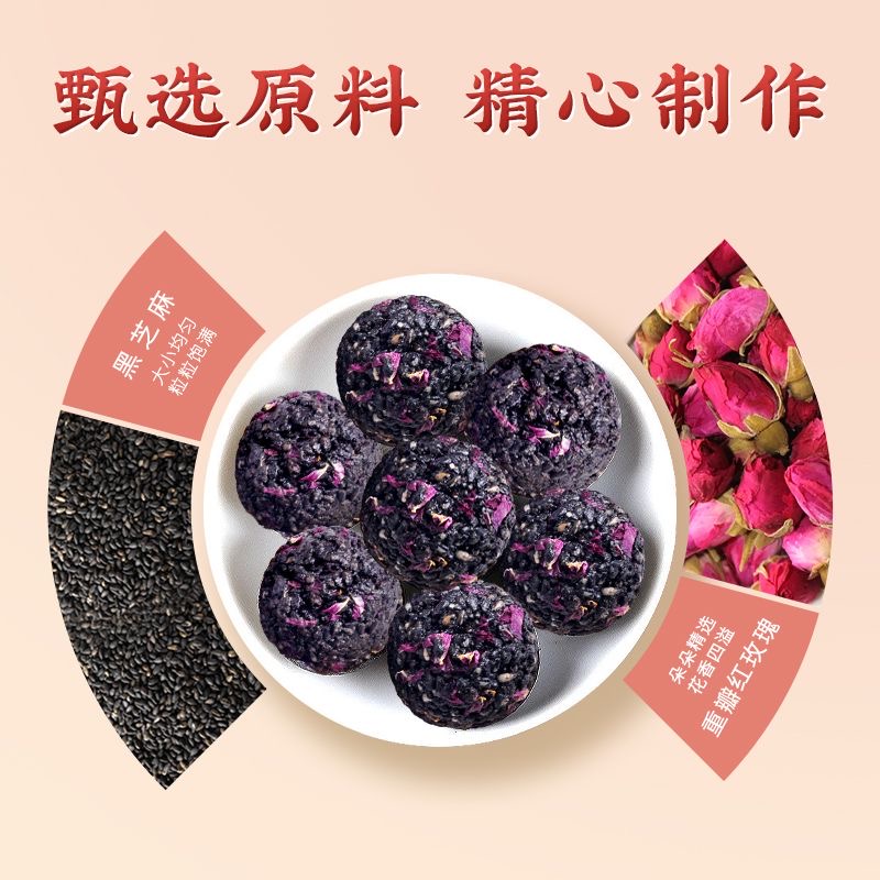 女士减肥专用解馋小零食糖友食品无糖玫瑰黑芝麻丸休闲营养高钙滋补养生丸低热量搭档健身上班族代餐饱腹夜宵居家味道纯正