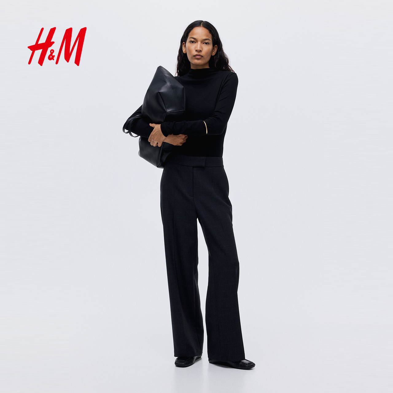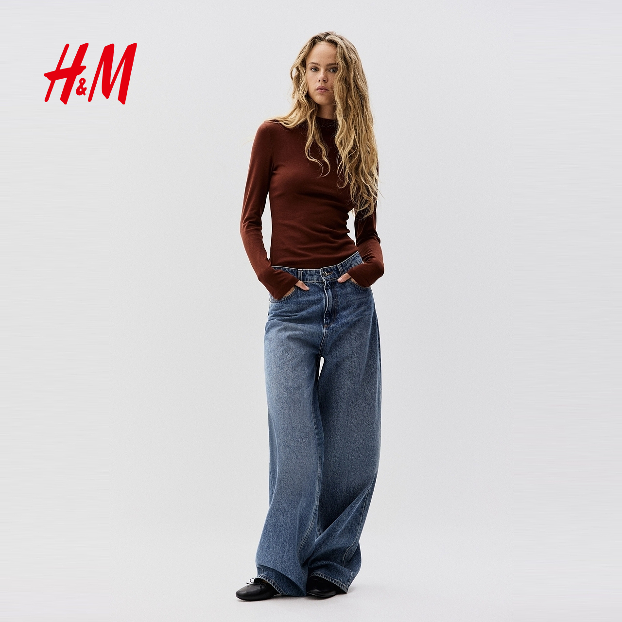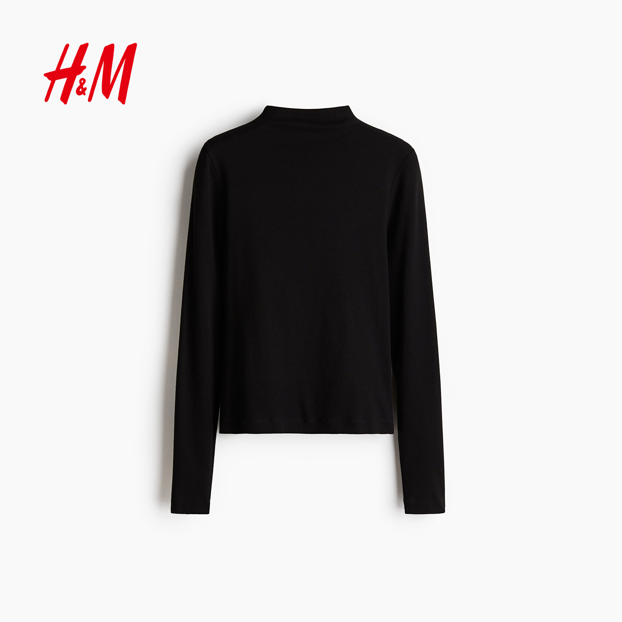 HM女装T恤2025年秋季新款内搭修身高领长袖保暖打底上衣1307934