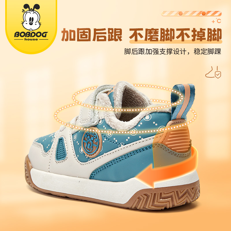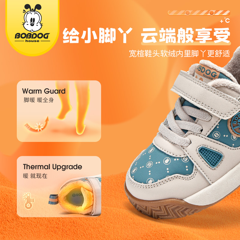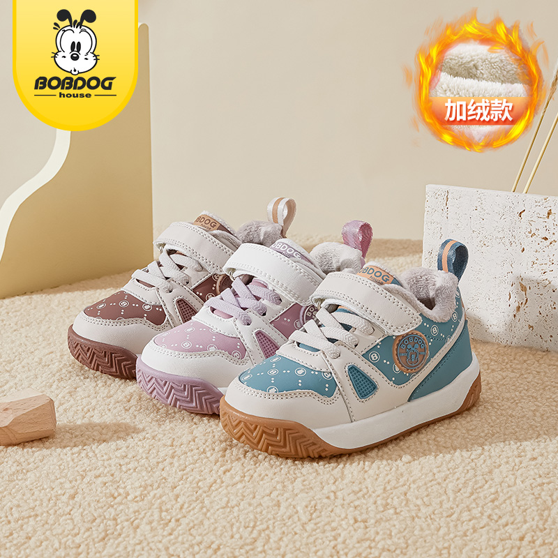 巴布豆童鞋运动鞋女童秋冬季2025新款加绒加厚鞋子男童休闲保暖鞋