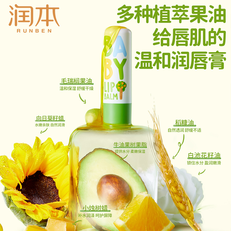 > 润本婴幼儿唇膏宝宝滋润补水保湿护唇膏小男女孩适用儿童唇膏