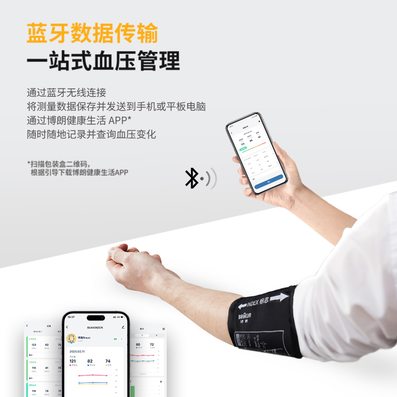 Braun博朗蓝牙款电子血压计BUA4060BWCN臂式家用高精准大屏测量仪