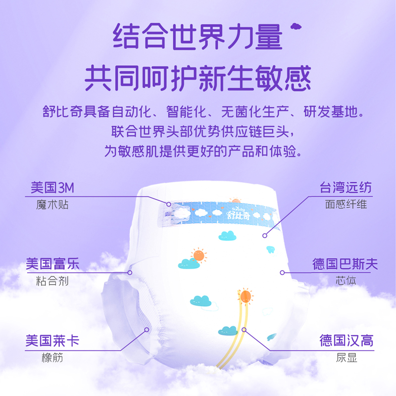 > 舒比奇维E敏感肌纸尿裤/拉拉裤L码NBSMXL新生婴儿尿不湿超薄透气