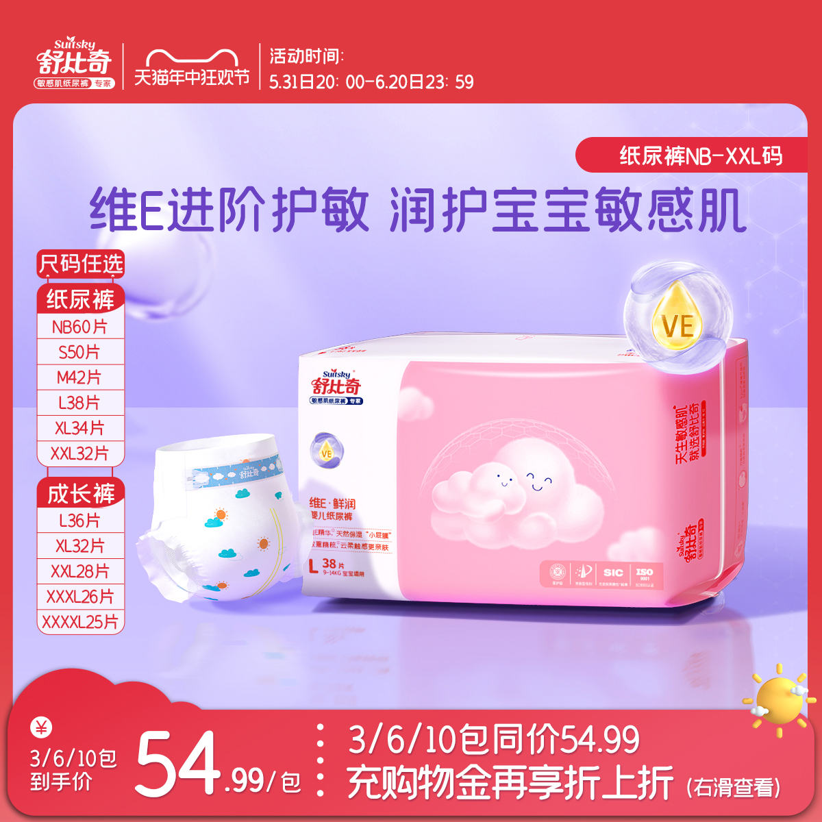 淘宝天猫舒比奇维E敏感肌纸尿裤/拉拉裤L码NBSMXL新生婴儿尿不湿超薄透气优惠券折扣价格–彩云间