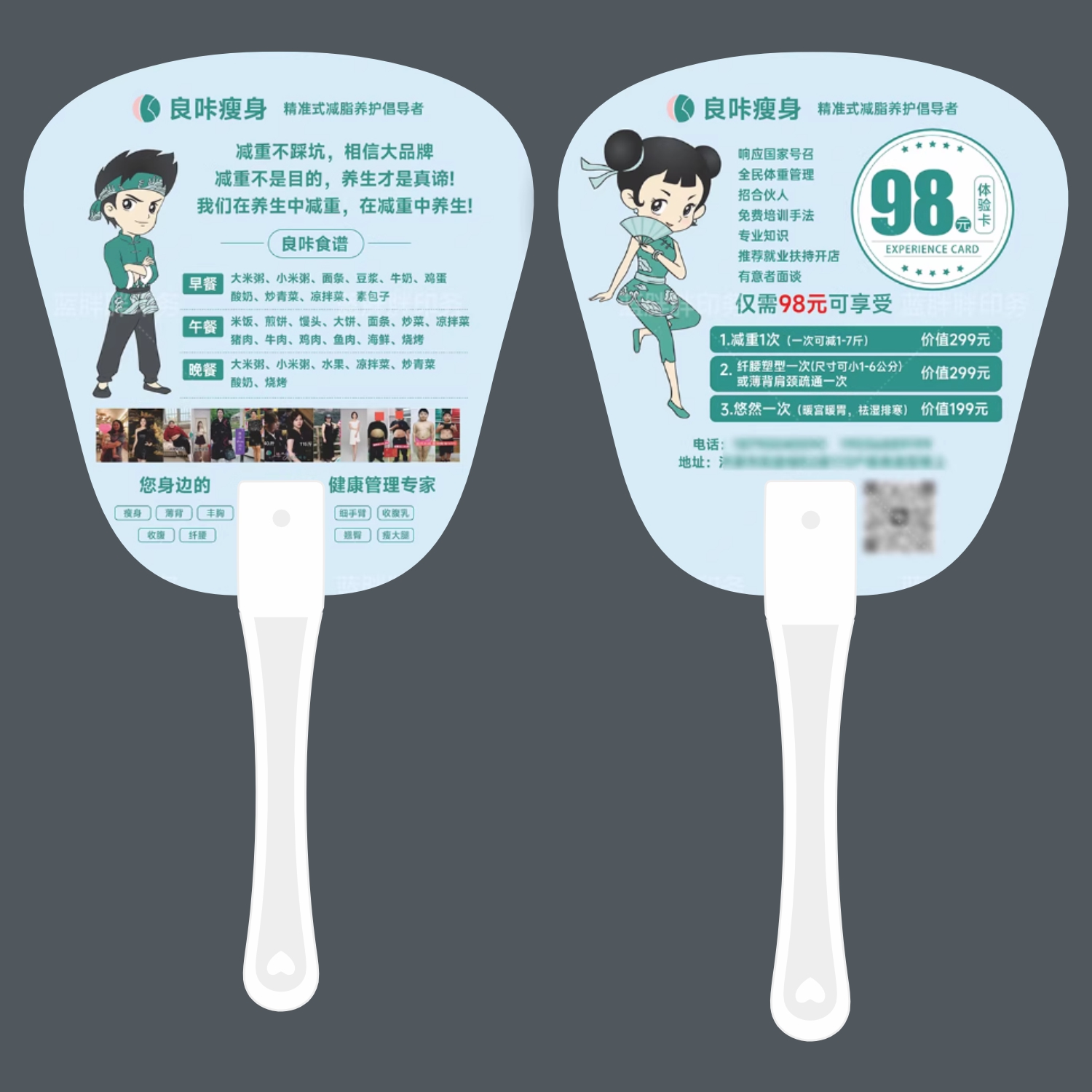 您的位置: 夏季良咔减肥纹绣医美瘦身美发洗发广告扇定制开业周年地推宣传扇