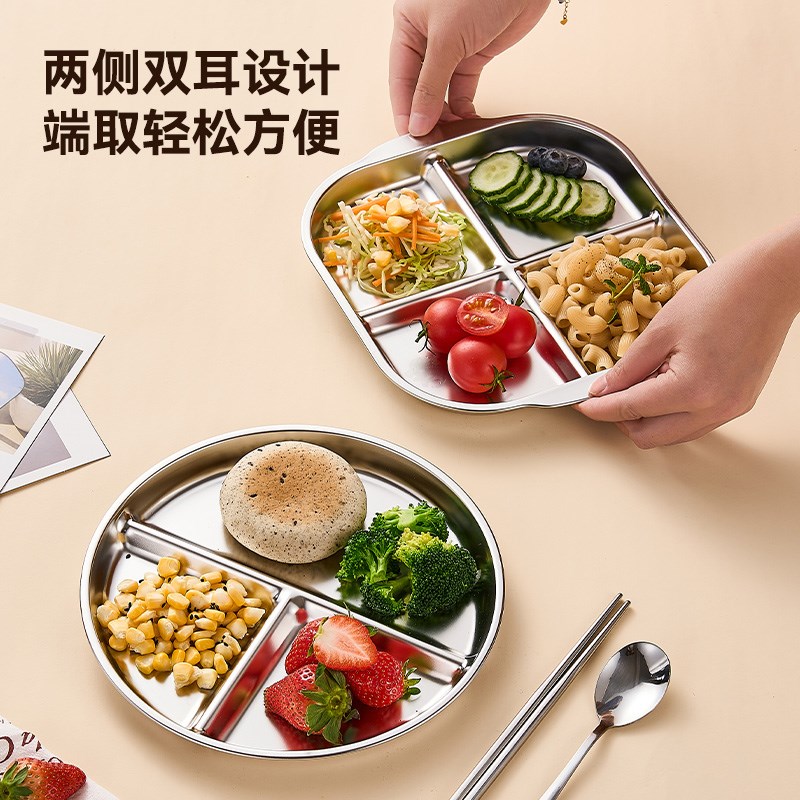 316不锈钢减脂餐盘分p格盘211减肥健身女生专用饭盘儿童学生饭菜