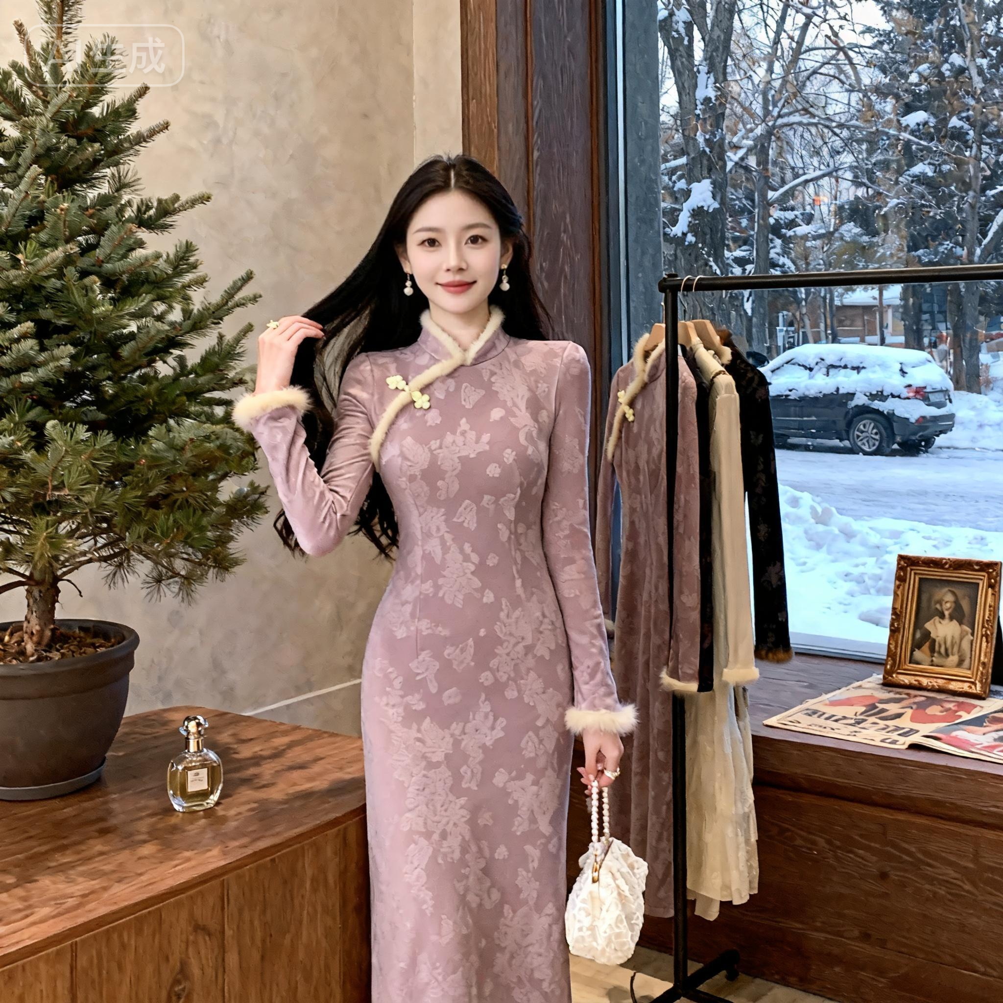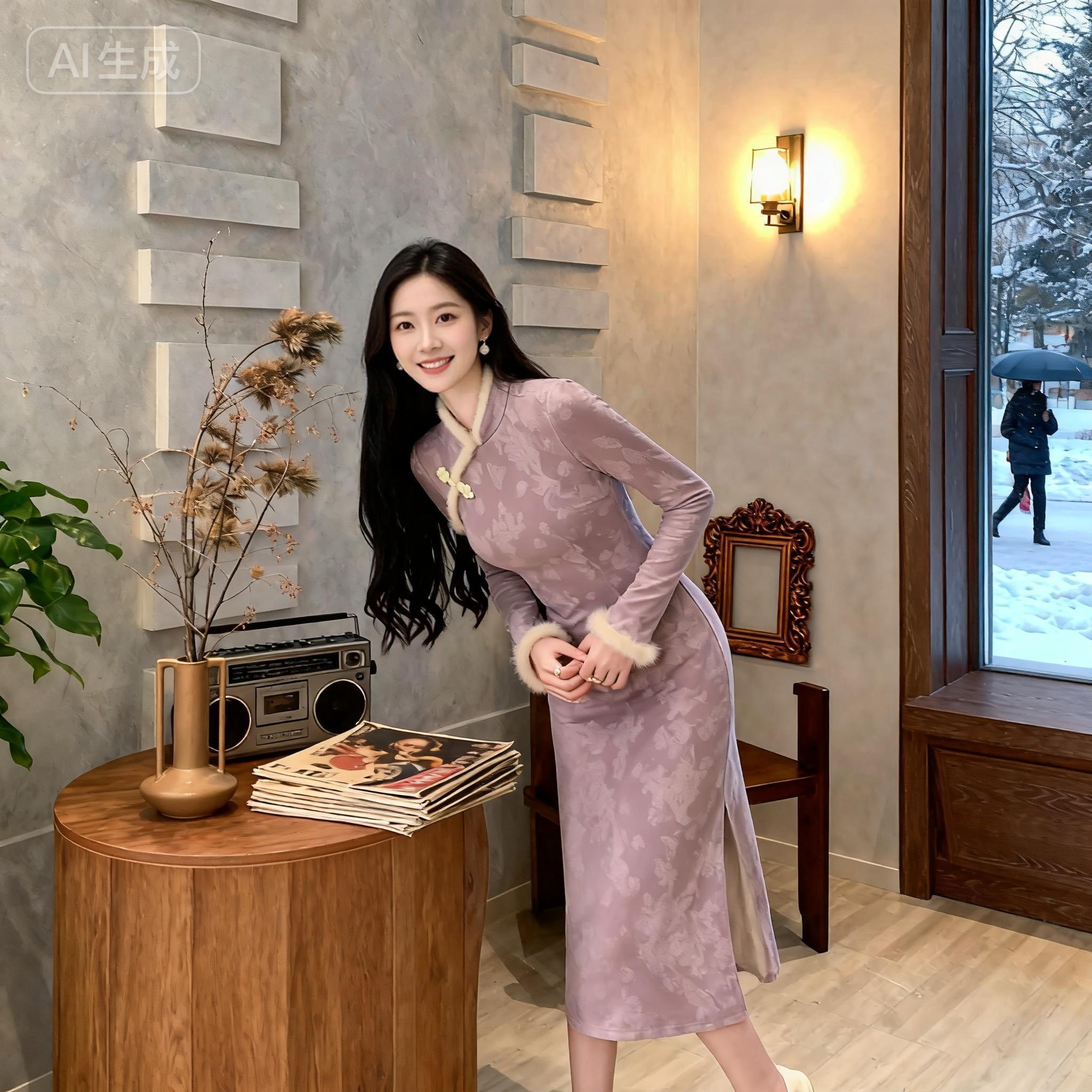 您的位置: 【紫琉璃-加绒】潇夫人自制新中式国风改良紫旗袍女长袖修身连衣�