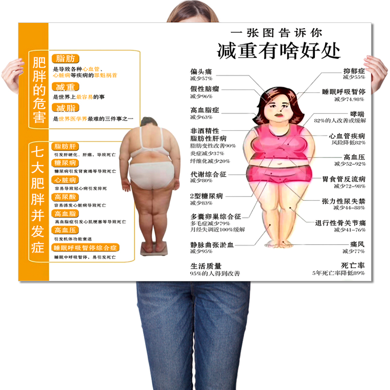您的位置: 中医养生馆美容院装饰画产后康复挂图肥胖的危害减肥海报广告贴纸