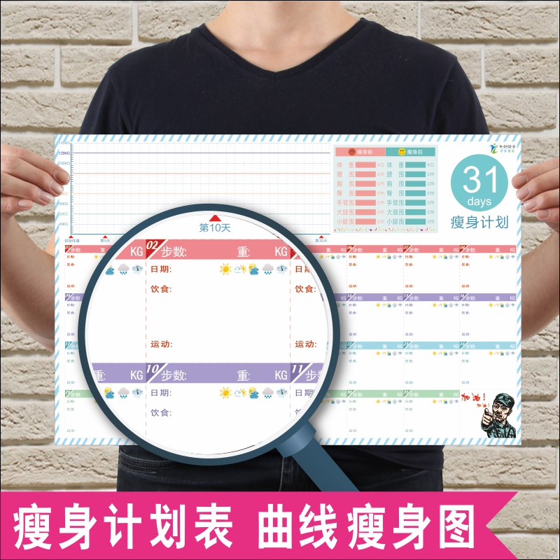 淘宝天猫减肥计划表体重自律打卡记录表30天减肥计划表31天瘦身100天减肥优惠券折扣价格–彩云间