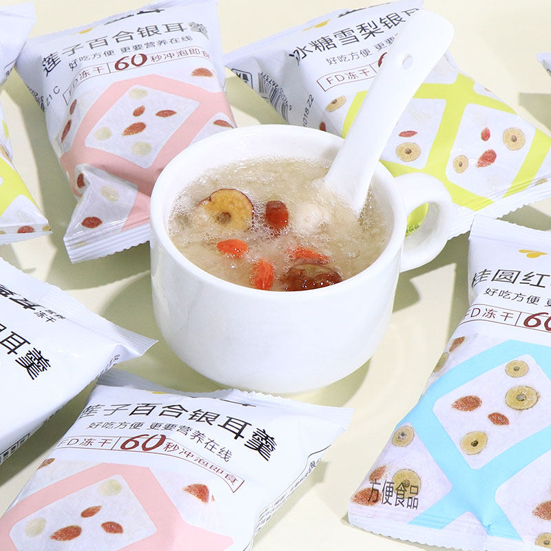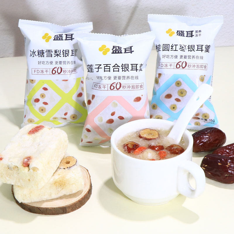 盛耳冻干银耳羹冲泡即食桂圆红枣冰糖雪梨链子百合免煮速食枸杞汤