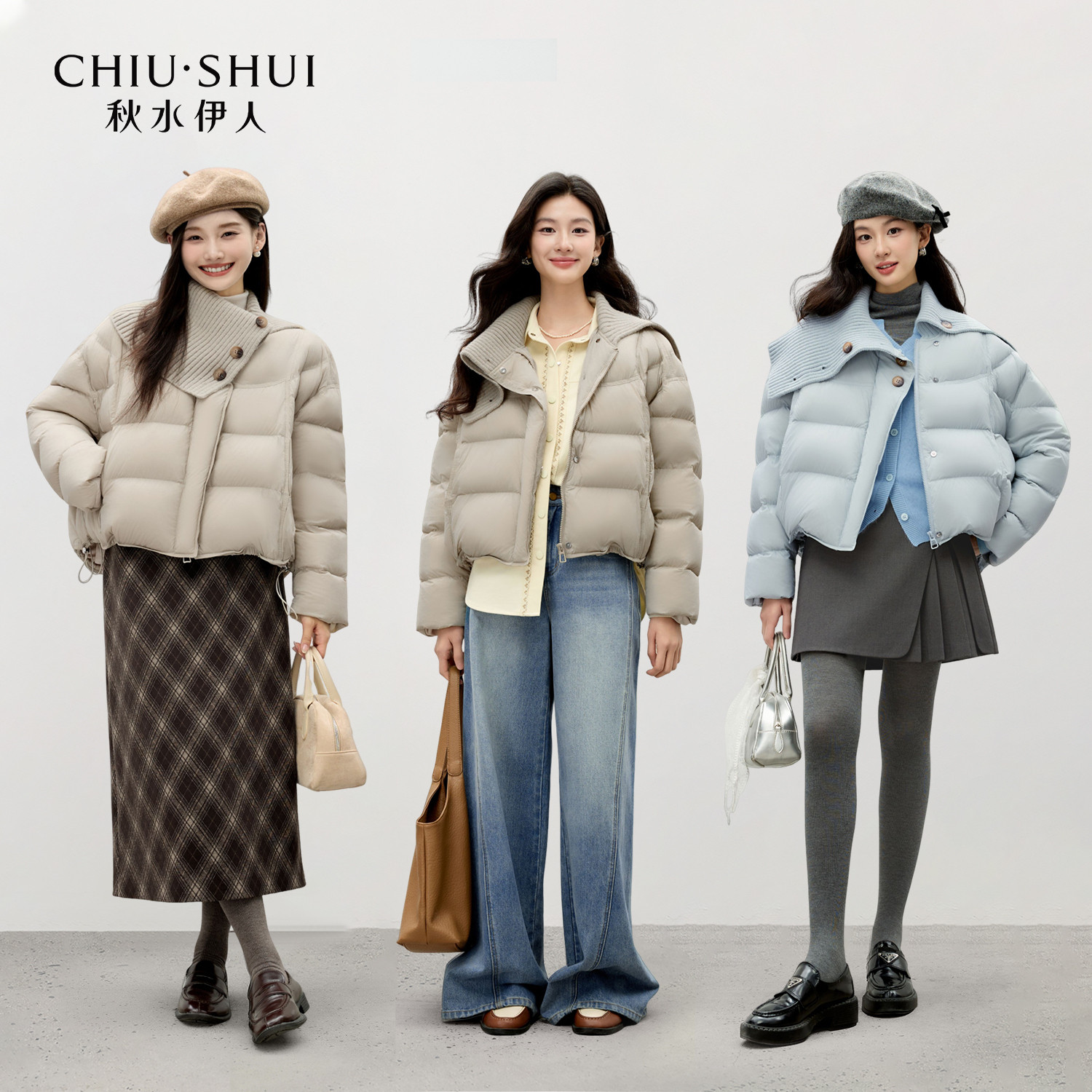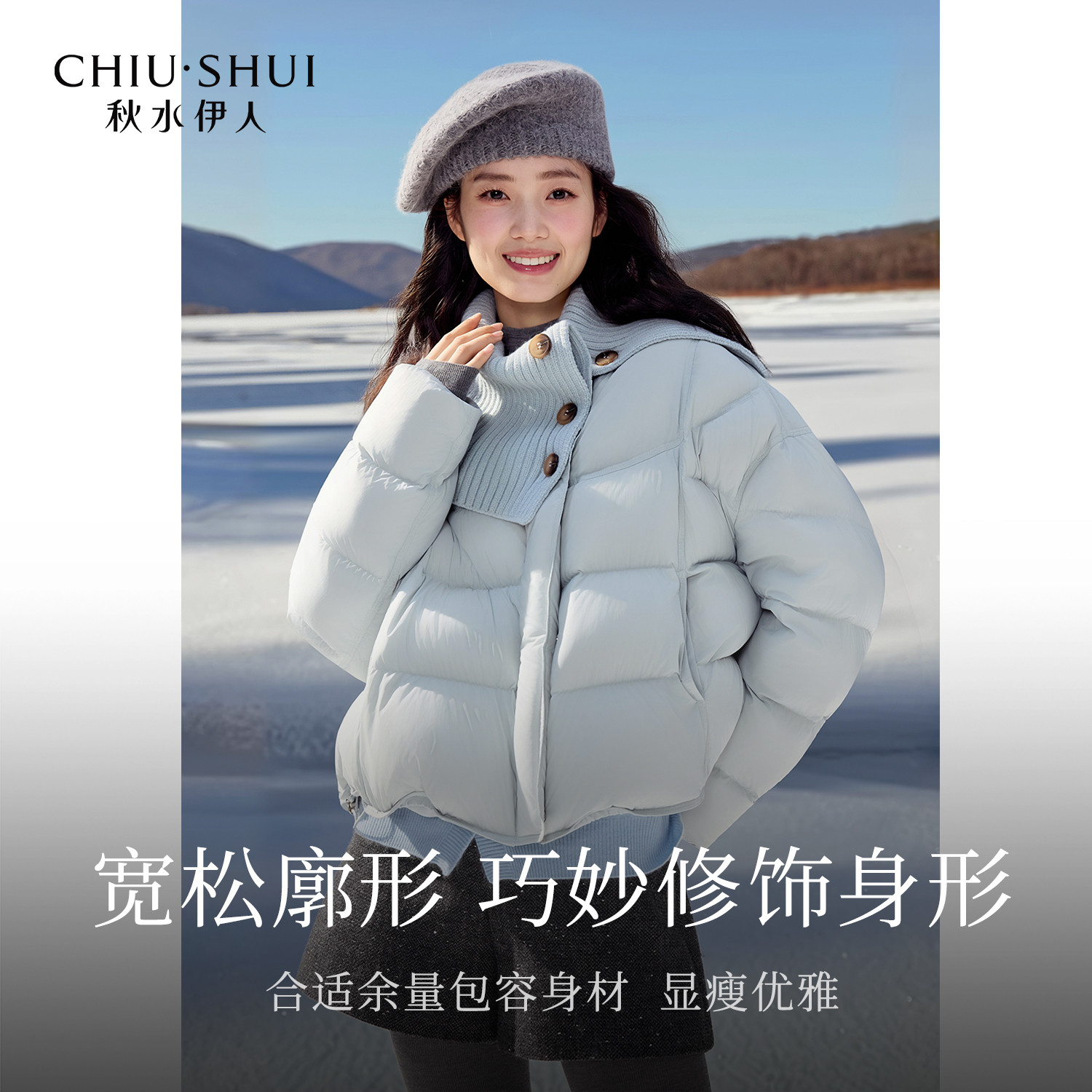 LESS冬短款时尚肌理感羽绒衣丝绒立领宽松短款羽绒服2OBC10920