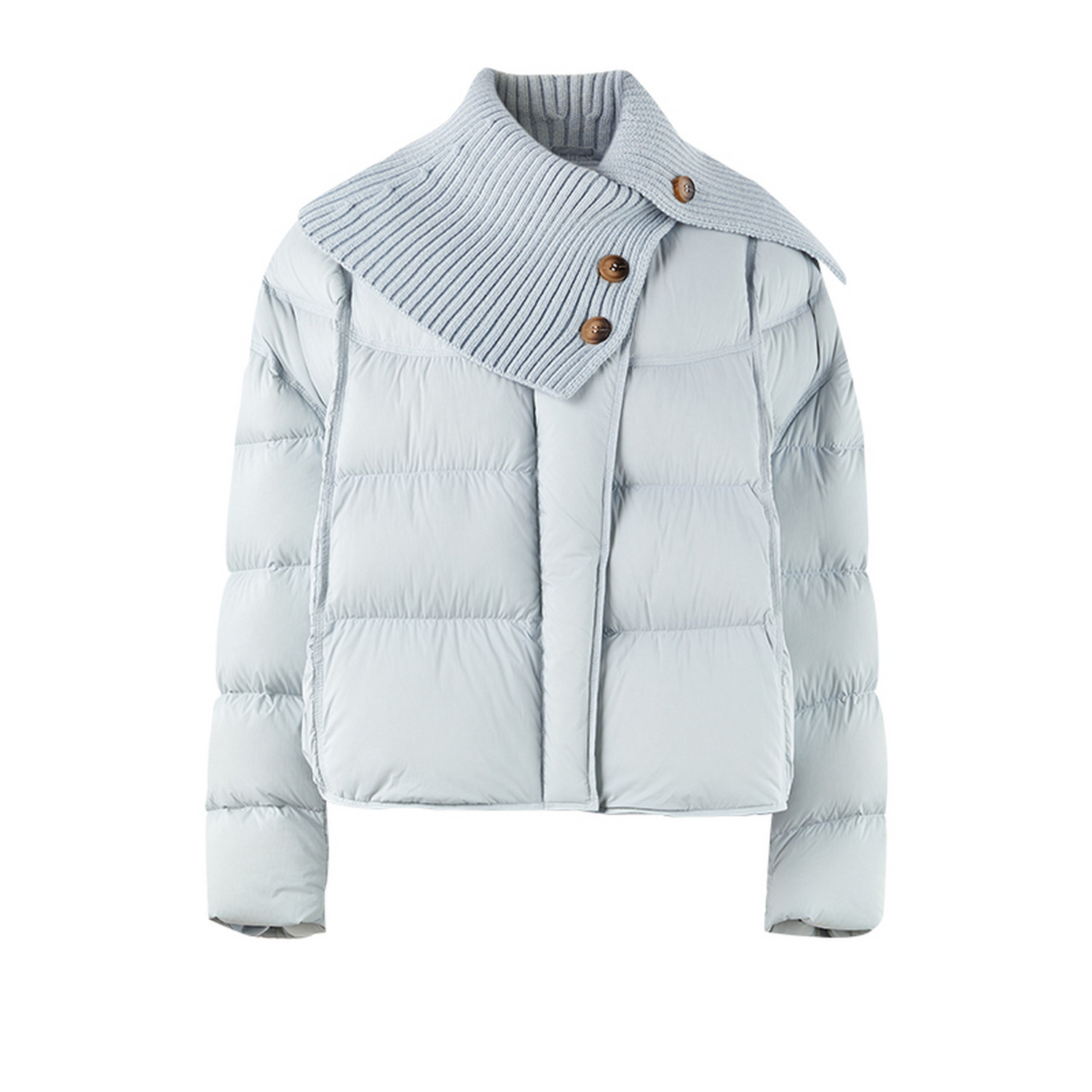 > 围巾立领针织拼接面包服2025冬季新款女装时尚简约羽绒服棉衣外套