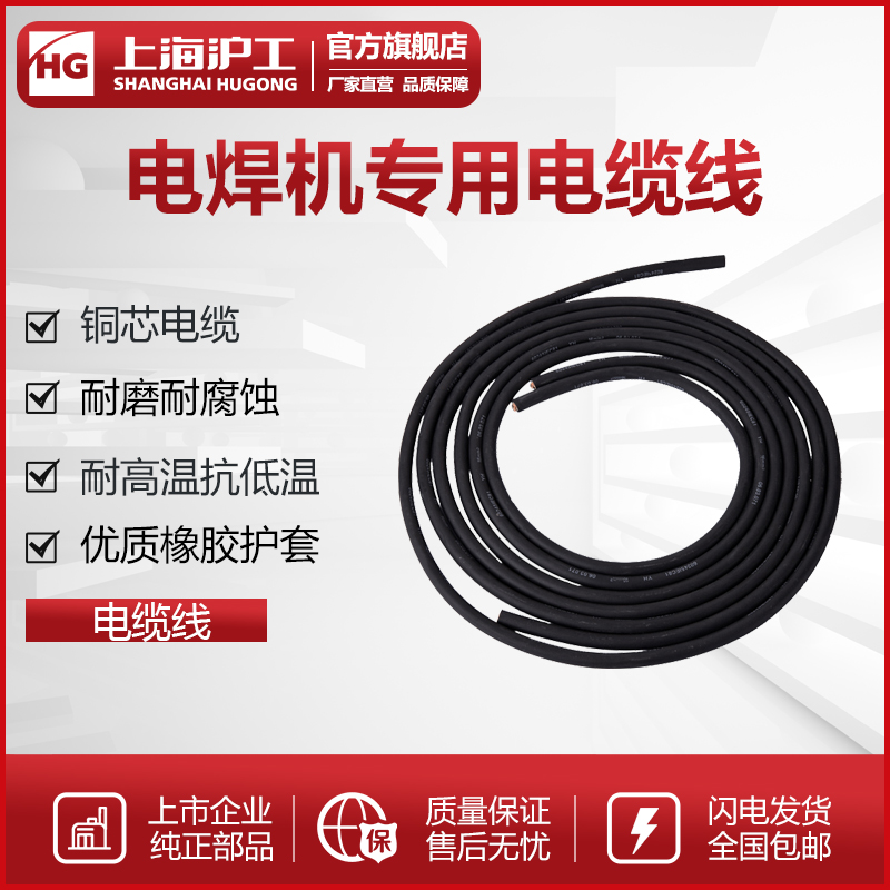 您的位置: 沪工电焊机线电缆线铜芯国标3芯4平方电源线16 25平方焊把线接地