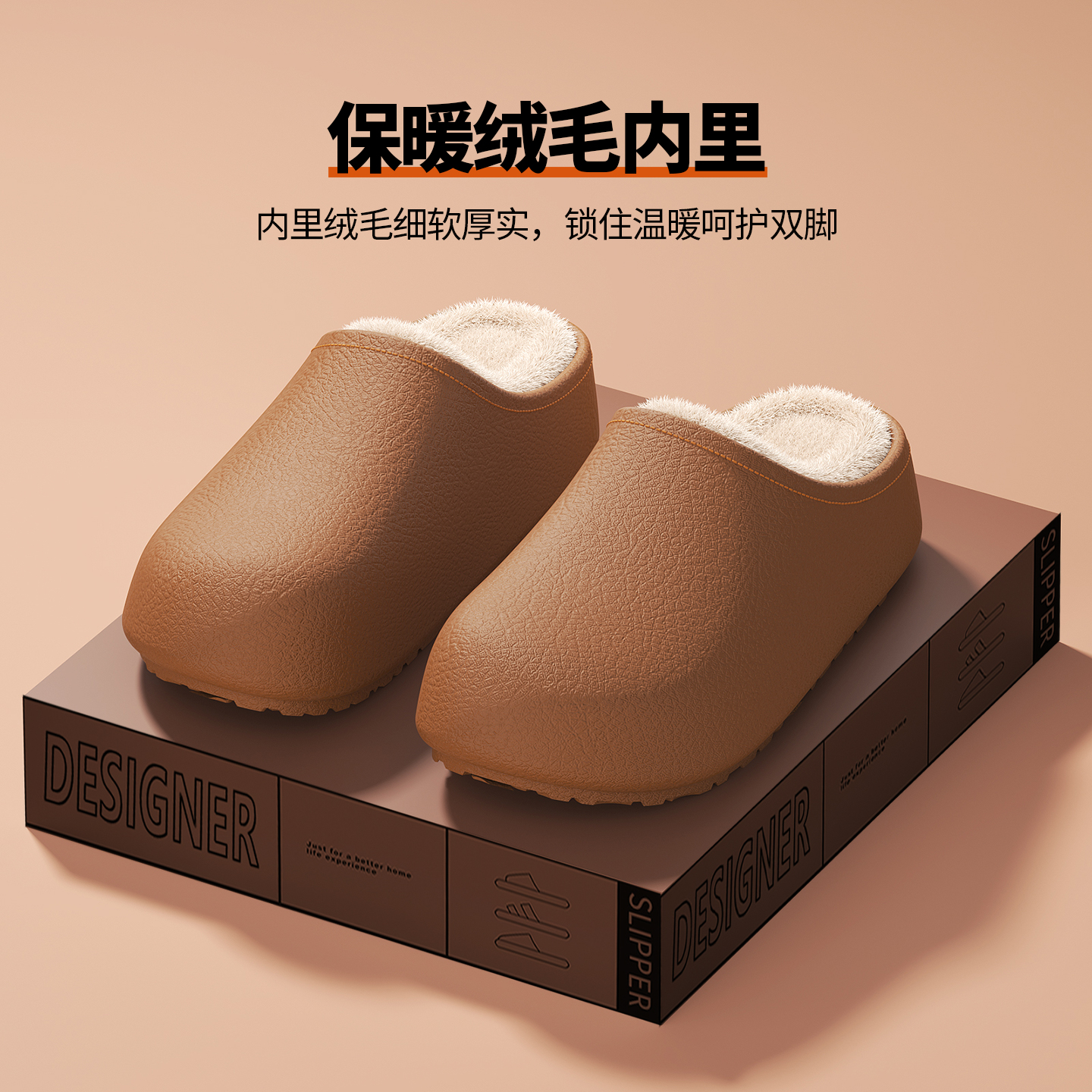 > 七色纺防水棉拖女款冬季室内家居保暖加绒加厚防滑外穿勃肯棉鞋男