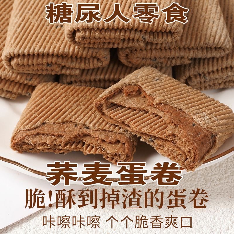 糖人专用主食代餐减肥解馋小零食无蔗糖荞麦香酥鸡蛋卷凤凰卷粗粮手工蛋卷传统糕点心低脂健康适配追剧时段给孕妇群体安全选择