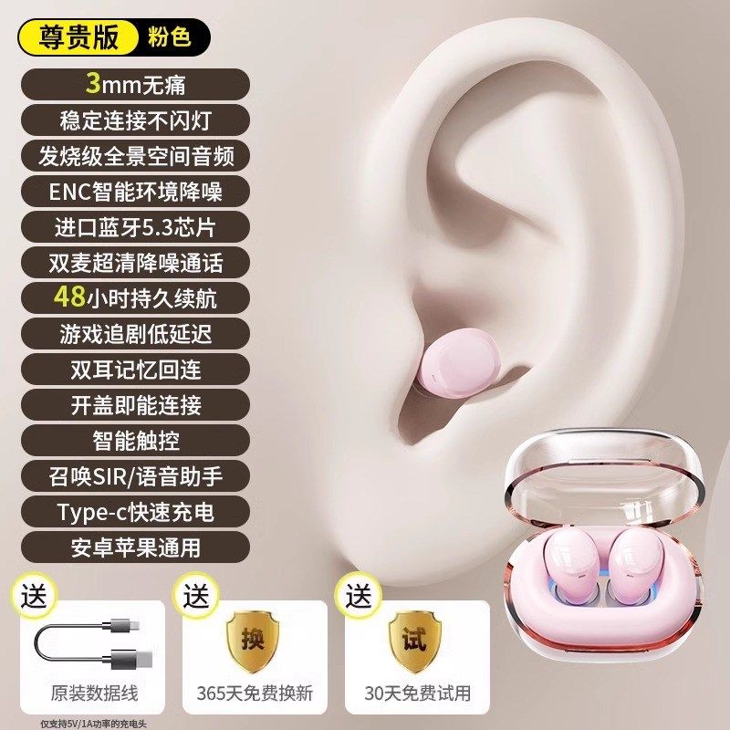 隐形蓝牙耳机微型最小藏睡眠降噪迷B你无线入耳式2024年新款男女