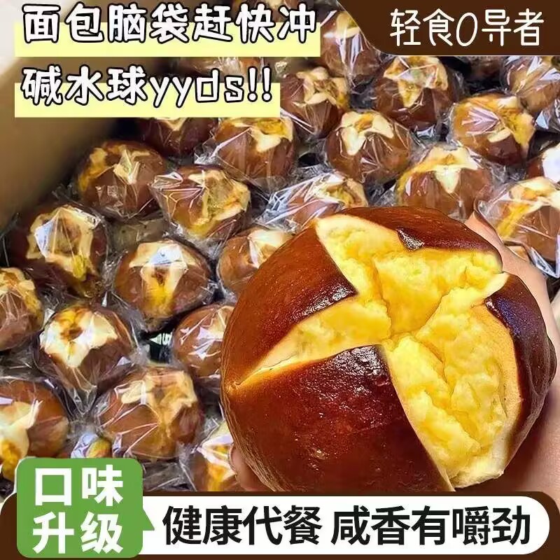 全麦碱水面包低脂欧包低卡零食面包减肥专用0脂无糖代餐饱腹低脂减肥吐司流心原味碱水球夹心芋泥芝士奶酪包减肥运动神器