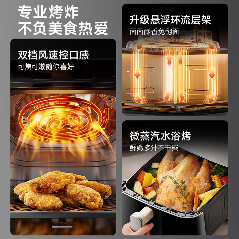 > 小熊空气炸锅家用可视大容量2025新款免翻面空气电炸锅烤箱一体机