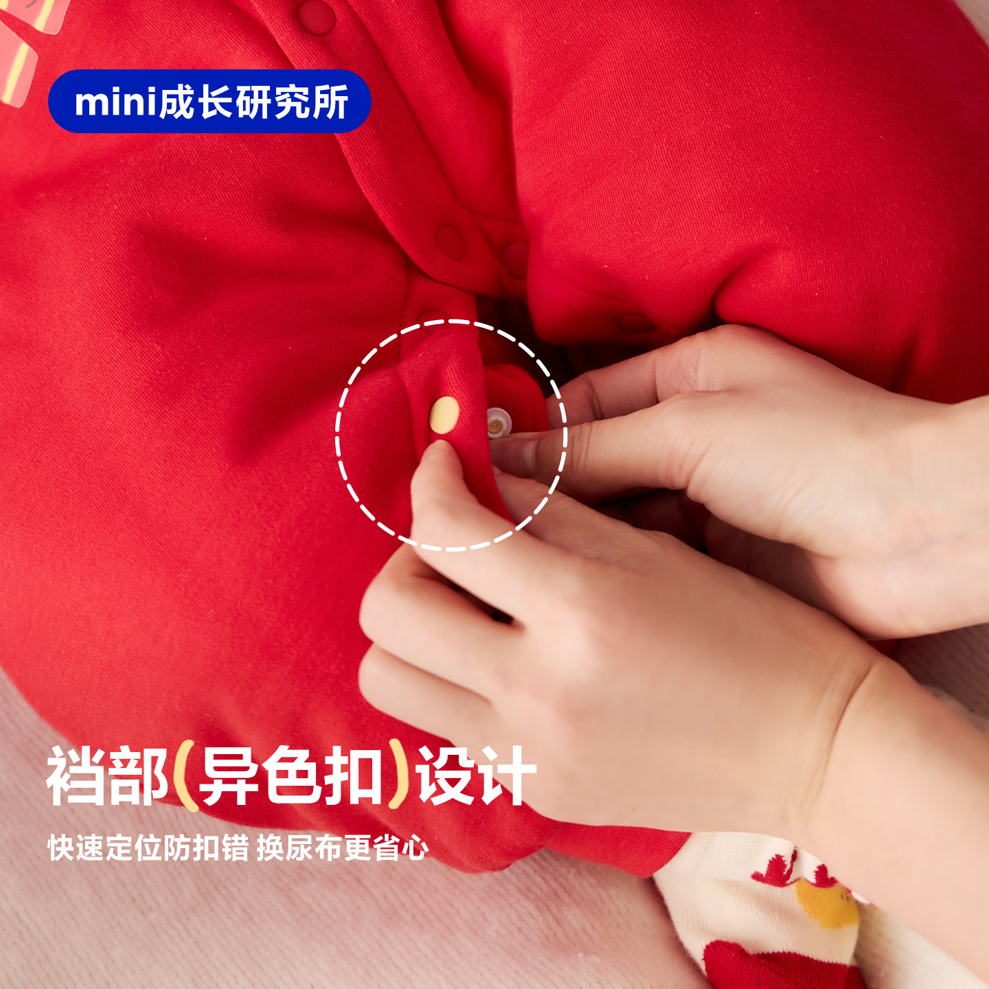 > 迷你巴拉巴拉婴儿衣服宝宝夹棉新中式连体衣新年红色爬服百日周岁