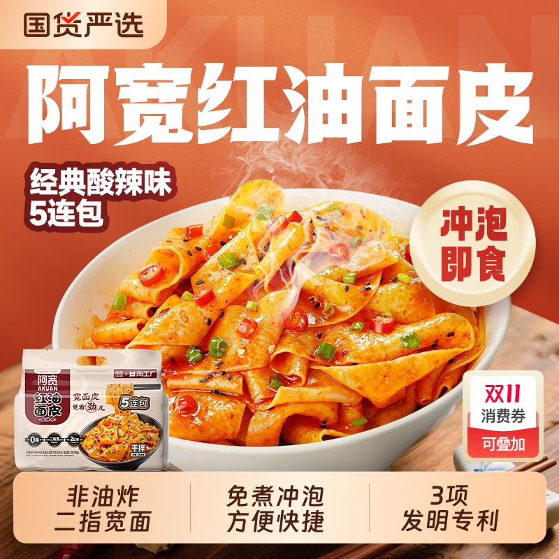 淘宝天猫阿宽红油面皮连包宽面皮方便泡面速食免煮冲泡宿舍美食袋装优惠券折扣价格–彩云间