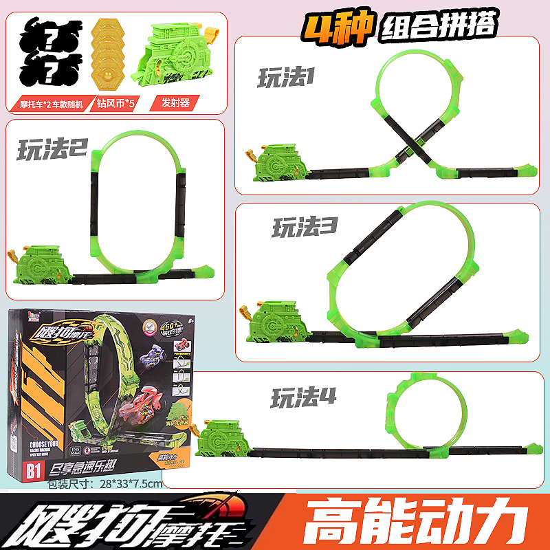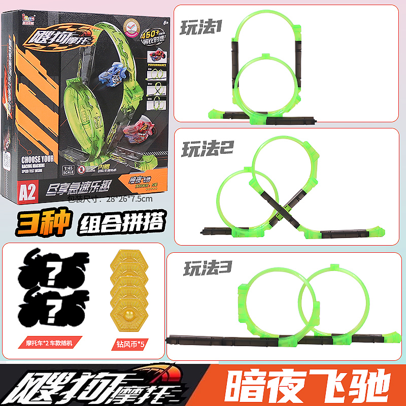 爱动飕狗摩托车迷你惯性车模型轨道儿童玩具暗夜飞驰极昼狂风套装