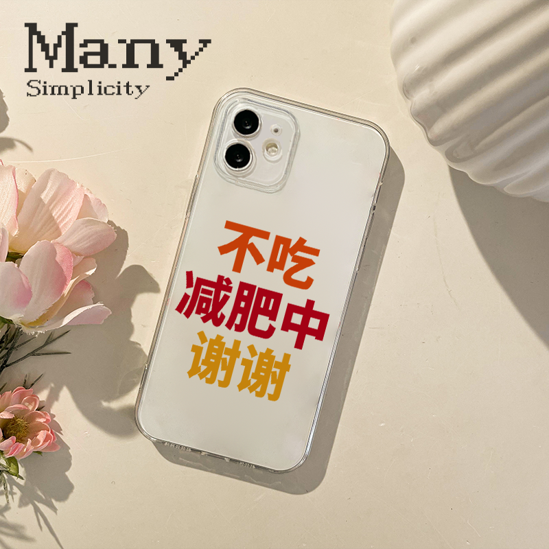 趣味文字 不吃减肥中谢谢简约小众手机壳XS适用于苹果13小米11vivoy53荣耀50红米k40iQOO15华为p60一加11pro