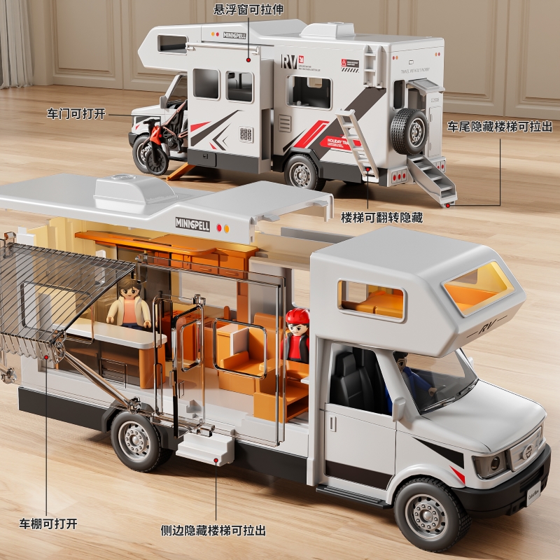 您的位置: 儿童房车玩具车大号模型旅行合金敞篷巴士露营仿真女孩男孩小汽车