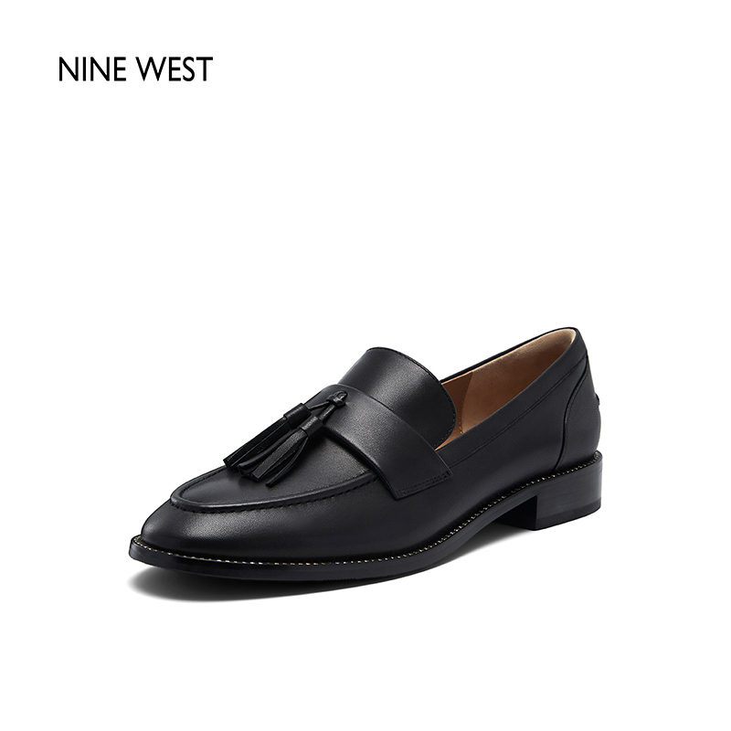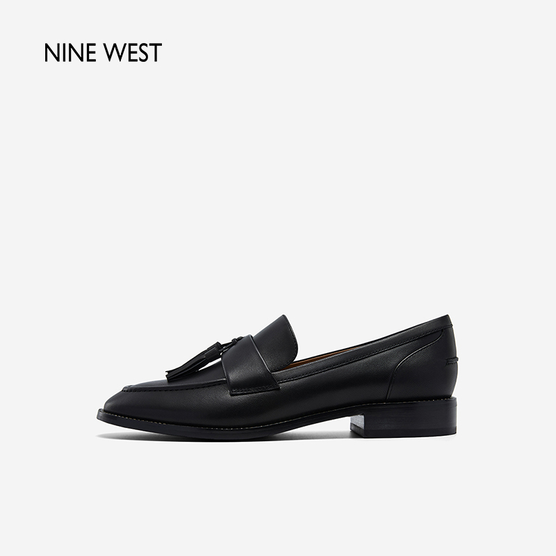 Nine West/玖熙流苏乐福鞋女秋季真皮小皮鞋百搭羊反绒一脚蹬单鞋