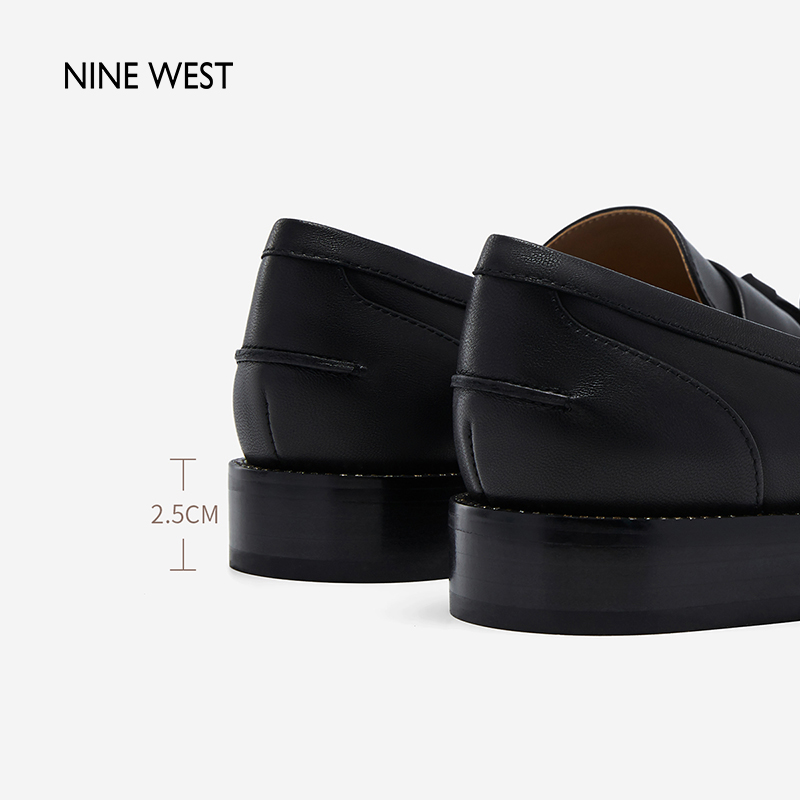 > Nine West/玖熙流苏乐福鞋女秋季真皮小皮鞋百搭羊反绒一脚蹬单鞋