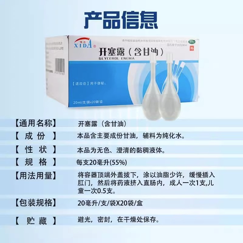 锡达开塞露成人用20ml*20支/盒含甘油用于便秘开塞露便秘药品正品