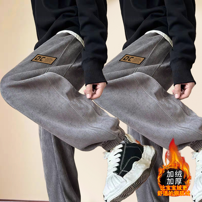 您的位置: 【冬季新品】灯芯绒运动裤男款加绒休闲拼接裤男ins潮宽松束脚卫�