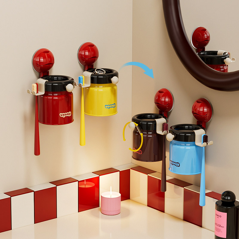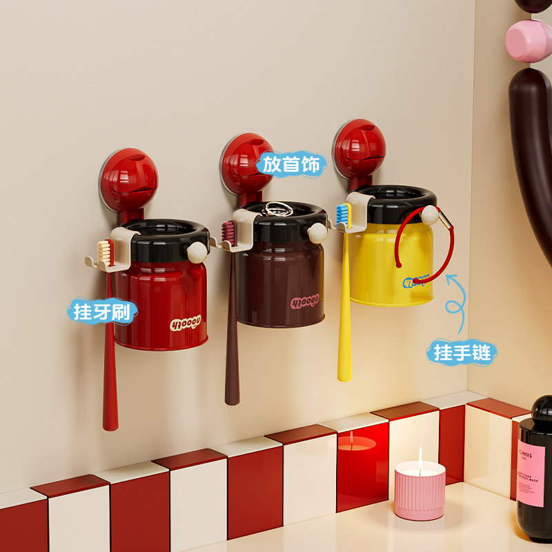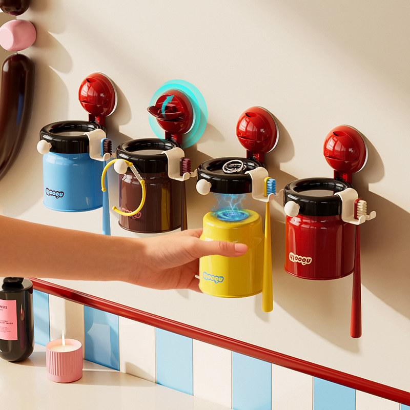 > 诺室吸盘牙刷置物架壁挂式免打孔刷牙杯倒挂磁吸漱口杯子收纳架子