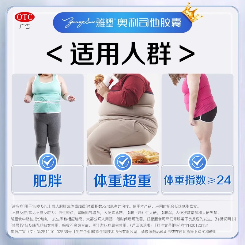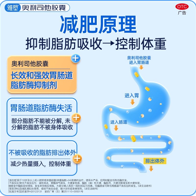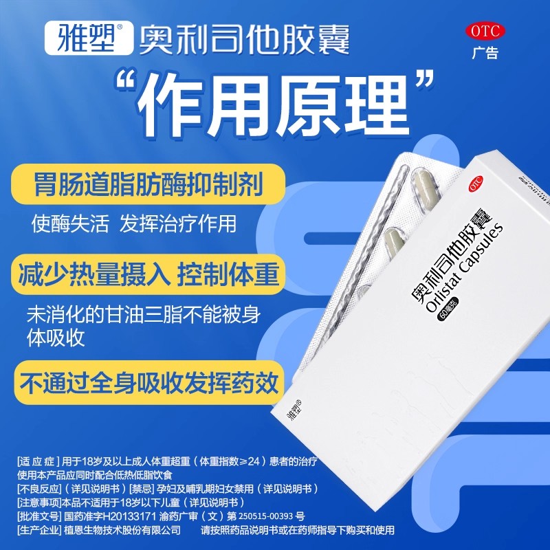雅塑奥利司他减肥胶囊正品60mg减肥减重减脂控制体重旗舰店减肥药