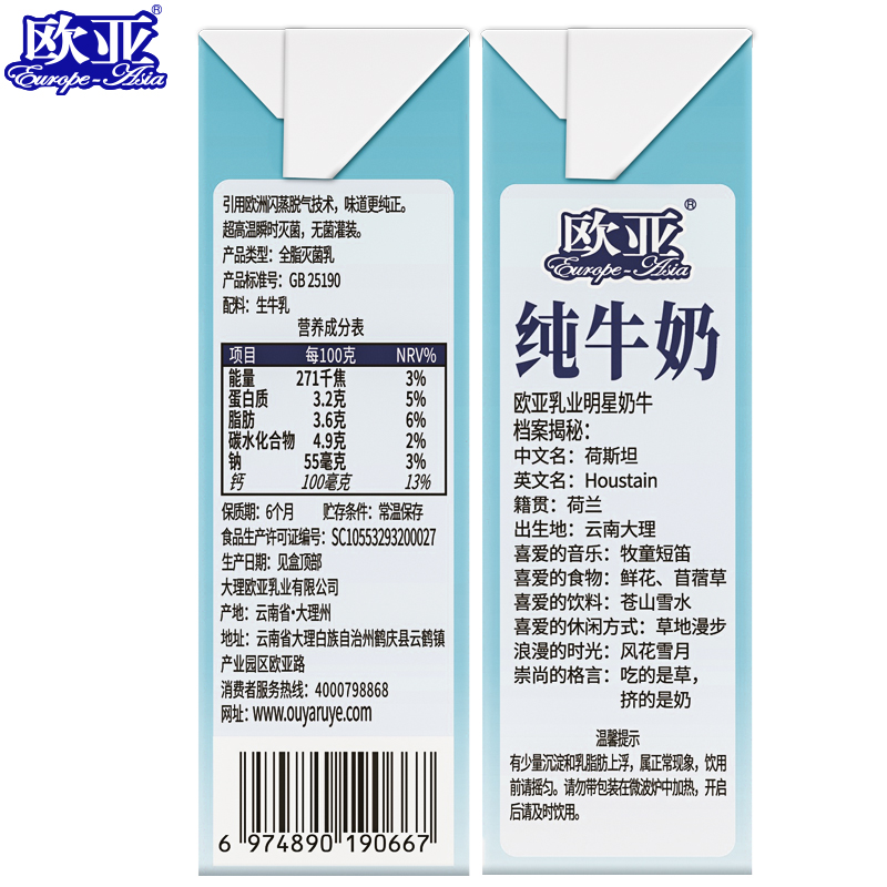 您的位置: 欧亚高原全脂纯牛奶200g×10盒2箱云南大理