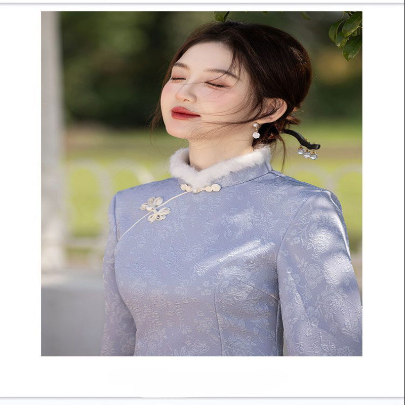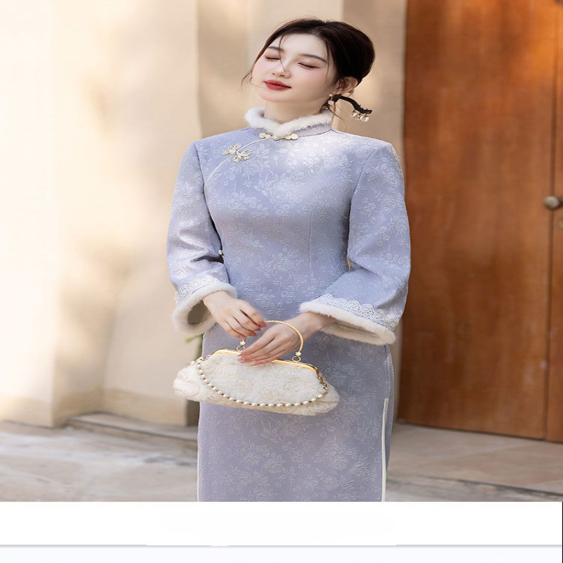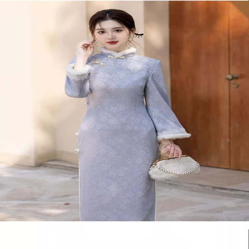 【兰若-加绒】潇夫人旗袍新中式年轻款改良日常加厚连衣裙气质秋�