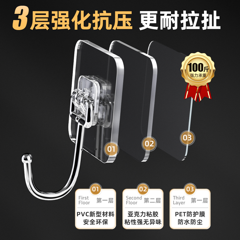 您的位置: 挂钩强力粘胶墙壁贴墙上粘钩挂钩免打孔强力承重宿舍无痕粘贴粘钩
