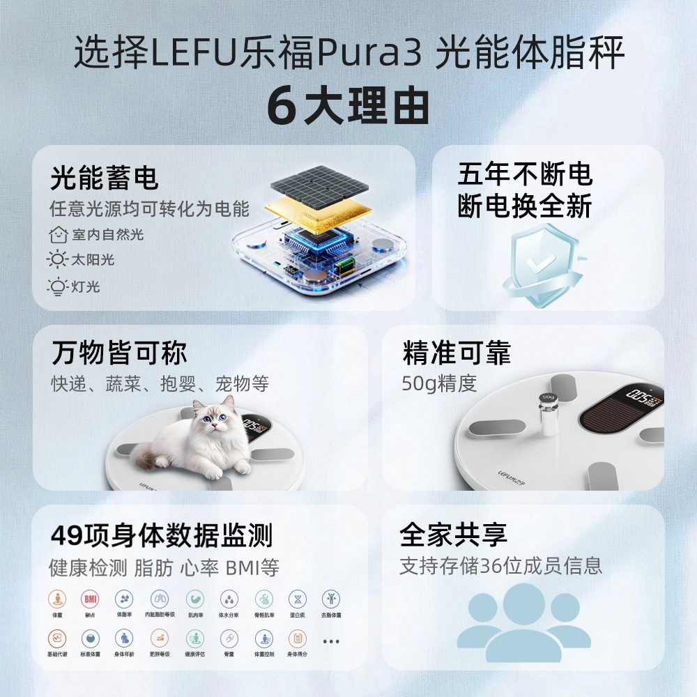 LEFU乐福Pura3【光能蓄电】体重秤体脂秤专业测脂电子秤家用减肥人体称重健康称专用智能精准斤单位数显示