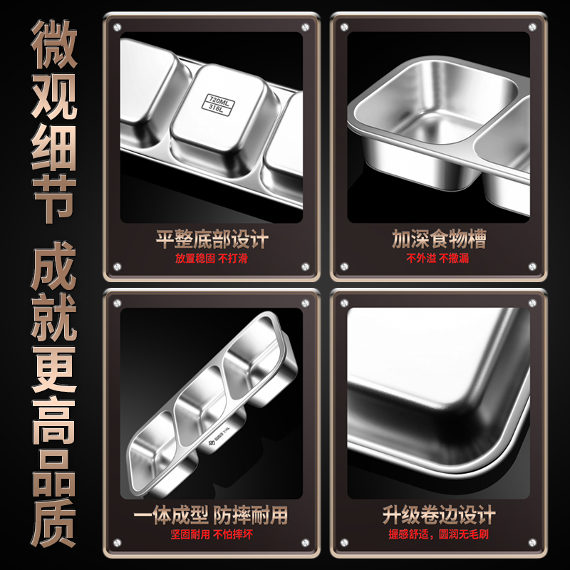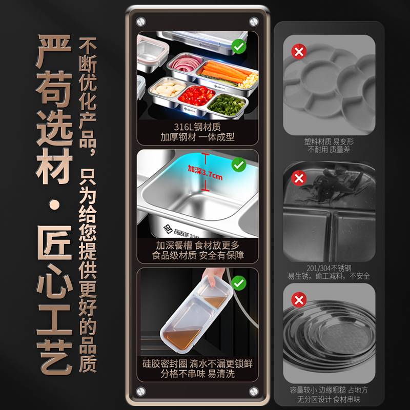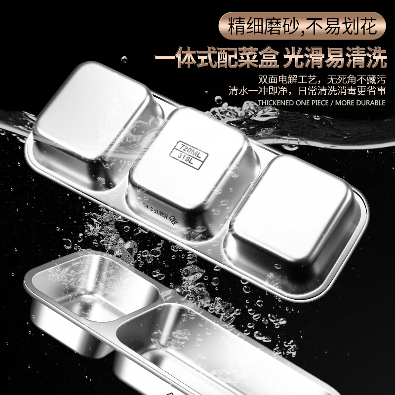 316L不锈钢分格备餐盒便携式减肥饭盒餐盒密封水果盒调料盒保鲜盒