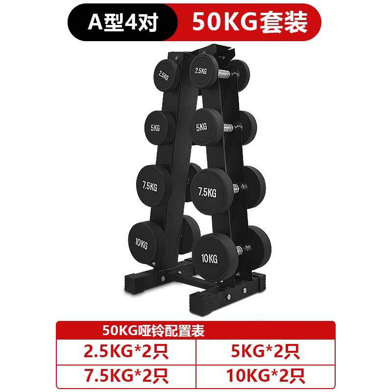 您的位置: 4对装哑铃架包胶圆头哑铃套装家用50KG 100公斤多对组合减肥塑身