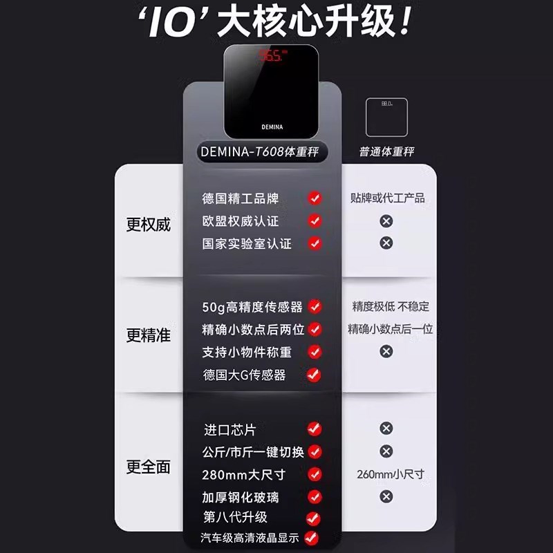您的位置: Demina德系体重秤精准家用加大加厚电子秤减肥可连手机蓝牙体脂秤
