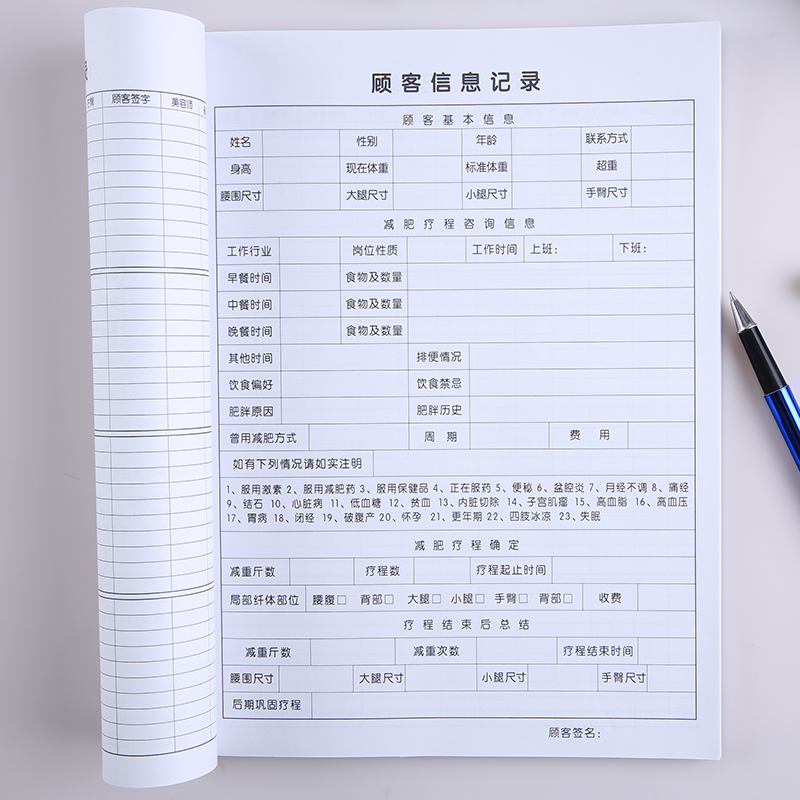 您的位置: A4减肥档案本 美容美发顾客档案本储值消费记录表VIP登记表包邮
