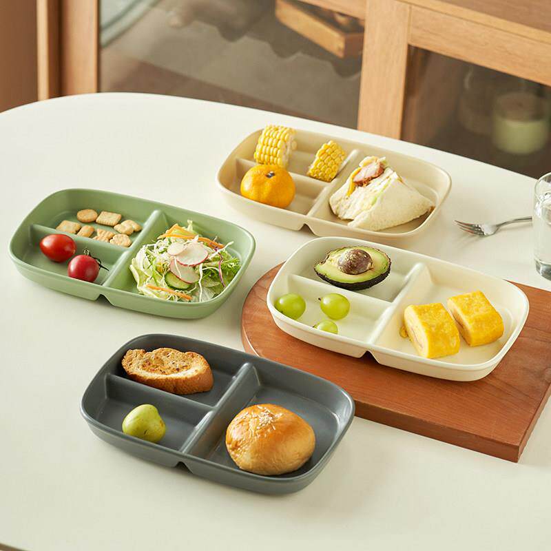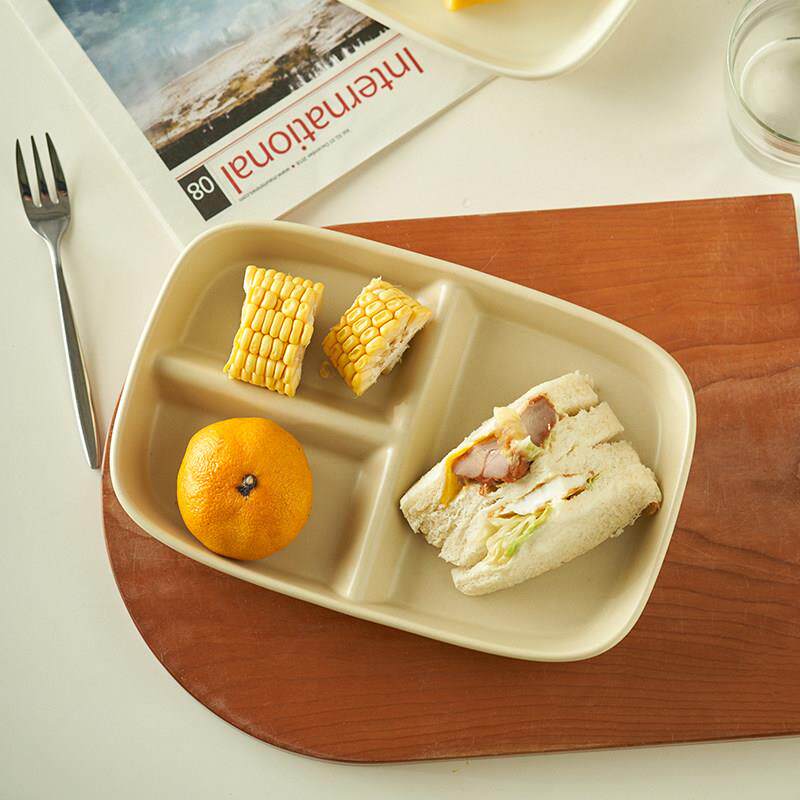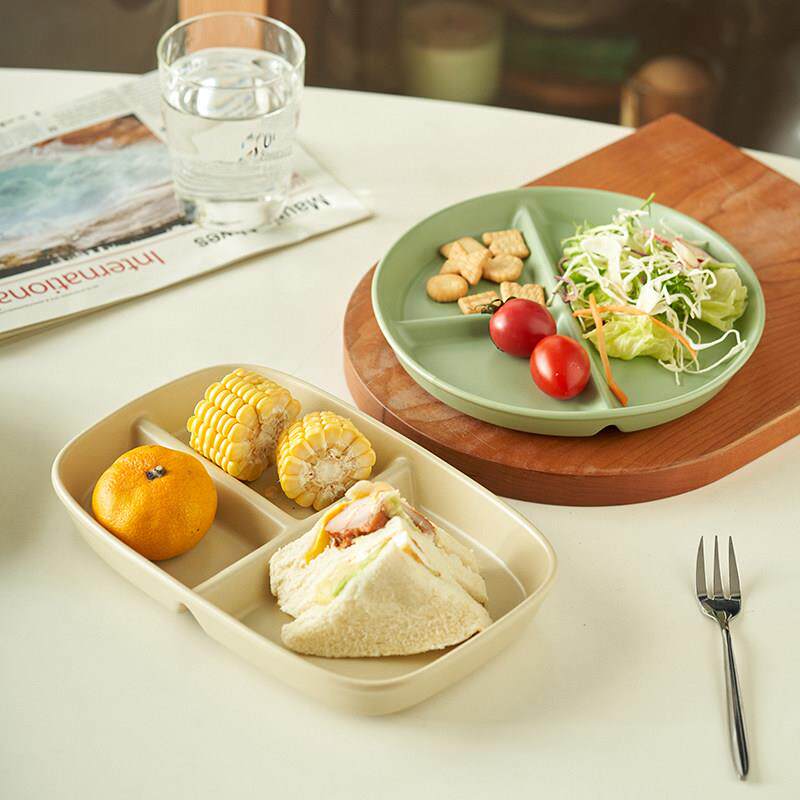 肆月分格餐盘家用减肥定量水果盘分餐分隔餐盘陶瓷盘早餐盘一人食