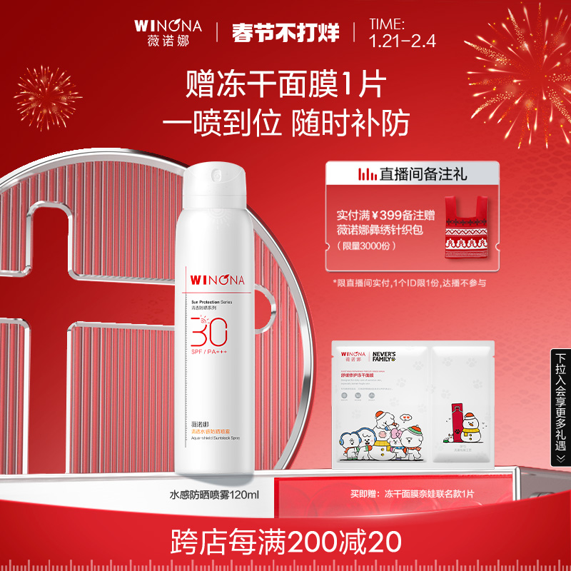 淘宝天猫薇诺娜清透水感防晒喷雾 SPF30 PA+++ 全身防水防汗补妆速干修护优惠券折扣价格–彩云间