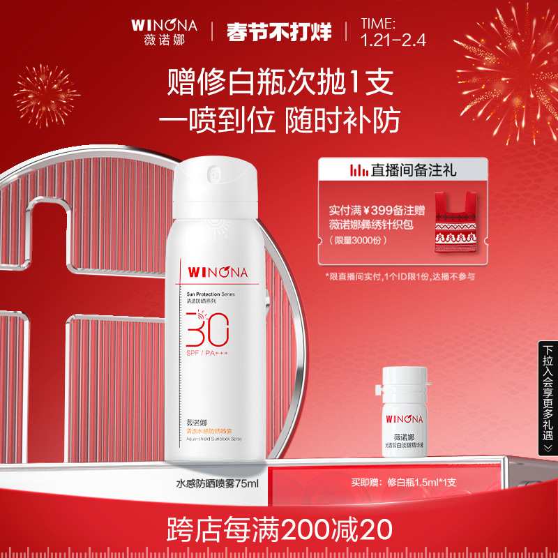 薇诺娜清透水感防晒喷雾 SPF30 PA+++ 全身防水防汗补妆速干修护