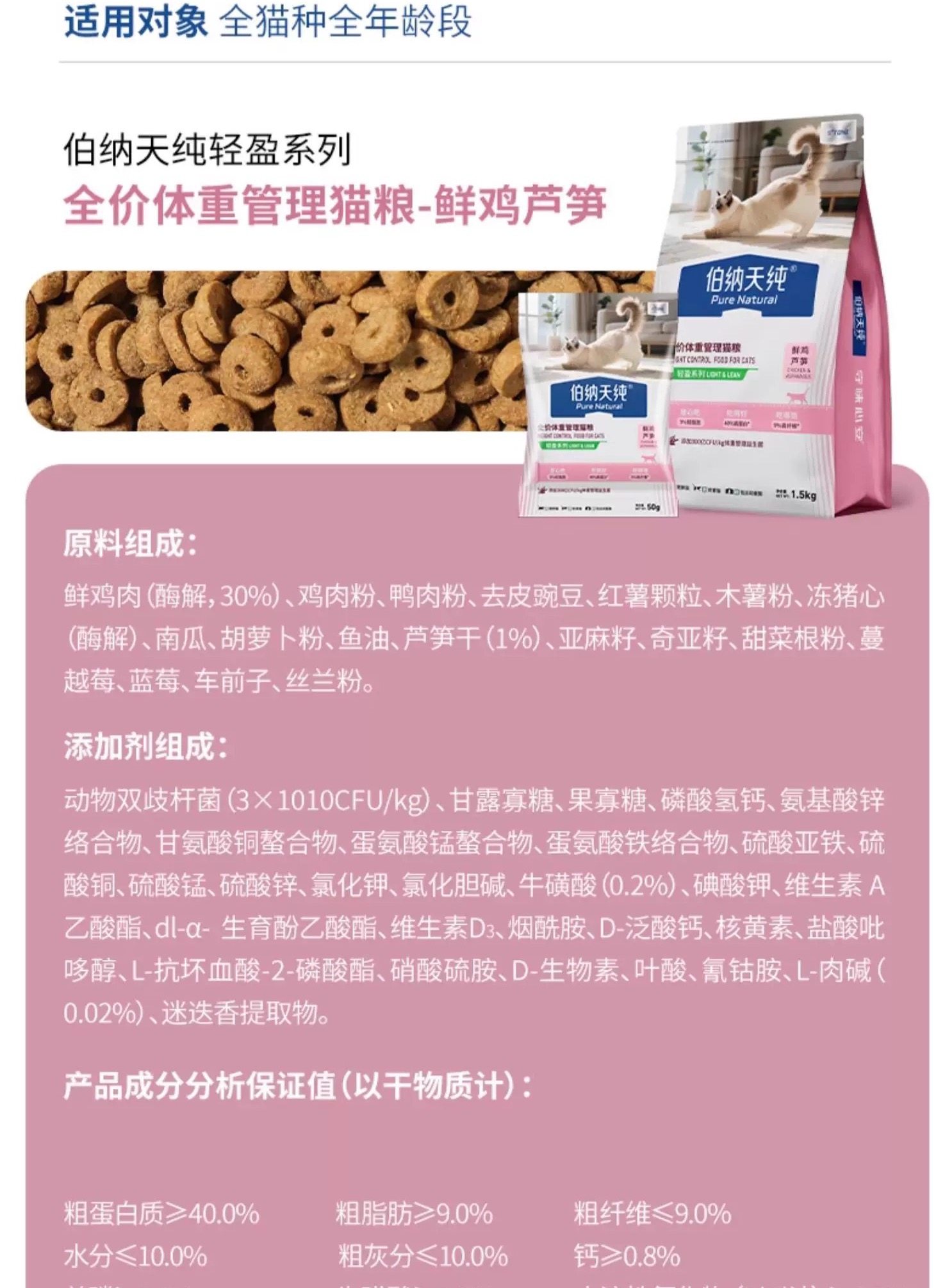 淘宝天猫伯纳天纯全价低脂减肥猫粮轻盈控制体重肥胖猫咪专用鲜肉鲜鸡芦笋优惠券折扣价格–彩云间