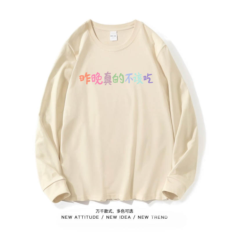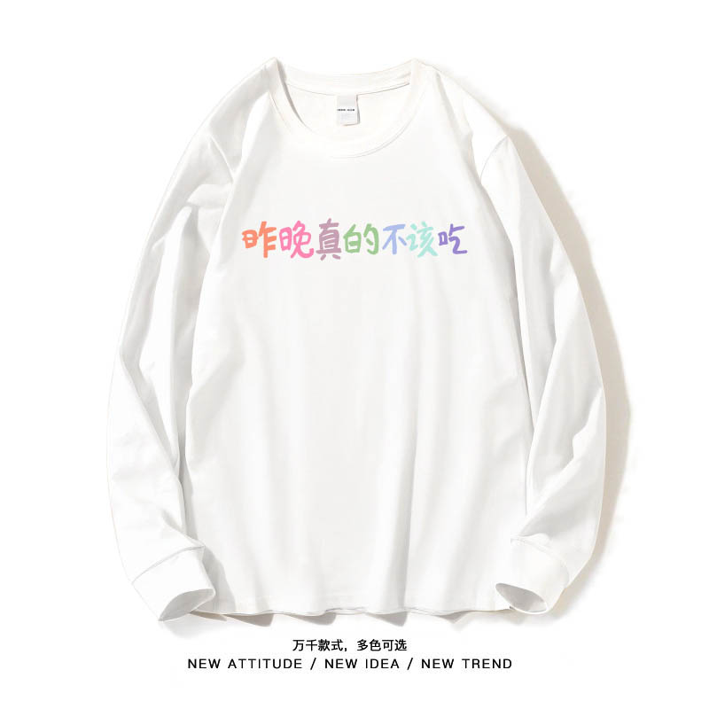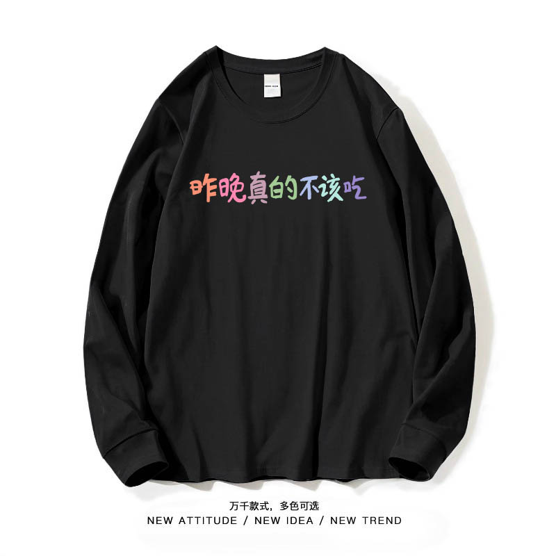 您的位置: 笑卖部/昨晚真的不该吃那么多搞笑减肥文字运动男女学生长袖T恤bf